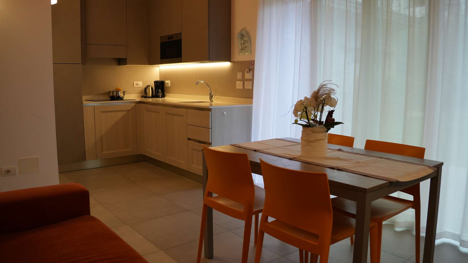 L'appartamento “l'Arancio” è situato al piano terra e caratterizzato dagli alti soffitti con travi di legno, è accuratamente curato in stile moderno ed è composto da angolo cottura efficientemente attrezzato, ampio soggiorno luminoso con divano letto per 1 o 2 persone, TV-Sat, camera matrimoniale per 2 persone molto confortevole con ampio armadio, cassaforte, scrivania; camera da letto con 2 letti singoli per 1 o 2 persone; bagno spazioso con ampio box doccia e asciugacapelli. L’appartamento dispone di una zona relax esterna con veranda privata e coperta, tavolo con sedie, sdraio e lettino da spiaggia. Ogni appartamento dispone di un parcheggio per auto esterno gratuito.