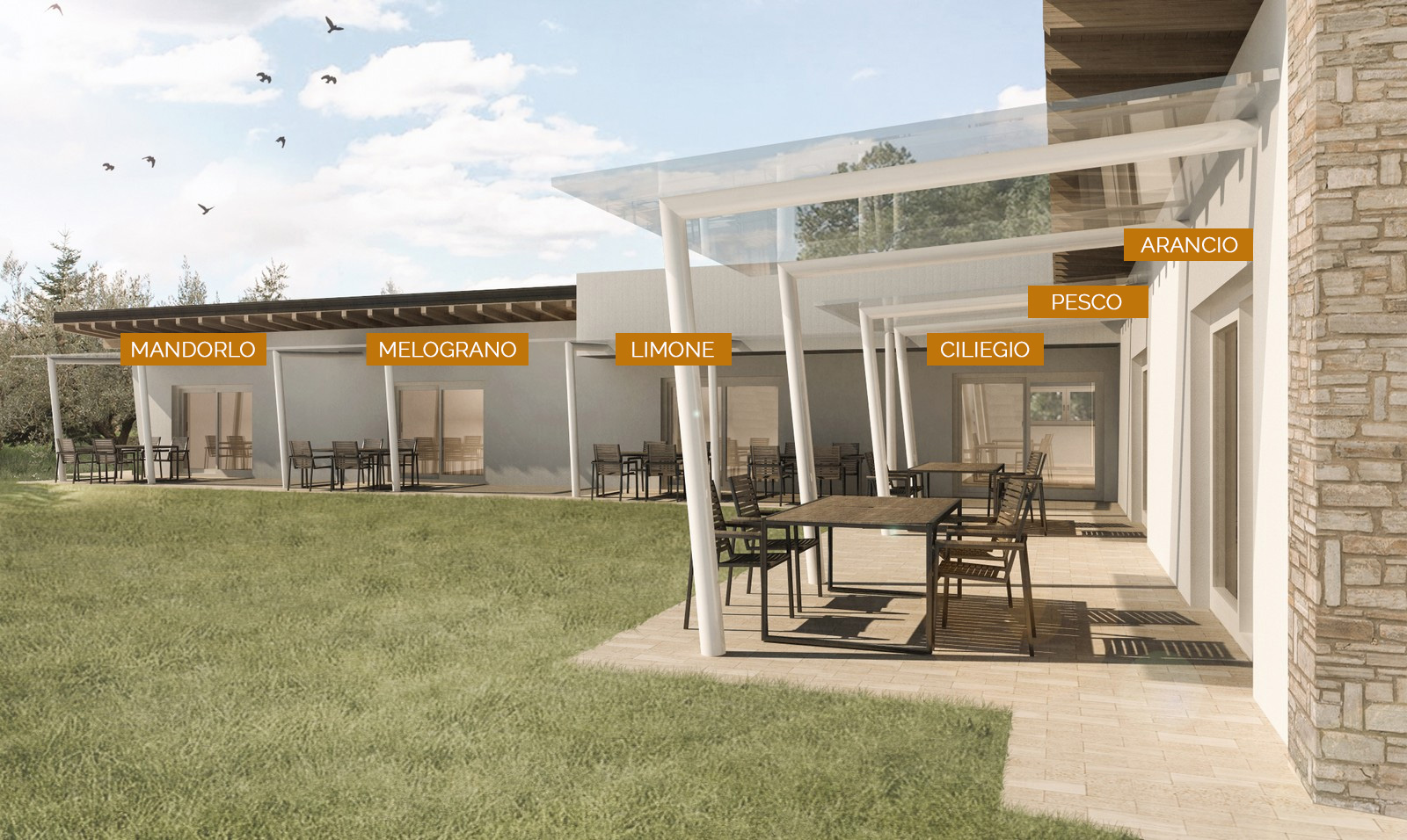 L’appartamento “il Melograno” è situato al piano terra e caratterizzato dagli alti soffitti con travi di legno, è accuratamente curato in stile moderno ed è composto da angolo cottura efficientemente attrezzato, ampio soggiorno luminoso con divano letto per 1 o 2 persone, TV-Sat, camera matrimoniale per 2 persone molto confortevole con ampio armadio, cassaforte, scrivani; camera da letto con 2 letti singoli per 1 o 2 persone; bagno spazioso con ampio box doccia e asciugacapelli. L’appartamento dispone di una zona relax esterna con veranda privata e coperta, tavolo con sedie, sdraio e lettino da spiaggia. Ogni appartamento dispone di un parcheggio per auto esterno gratuito.
